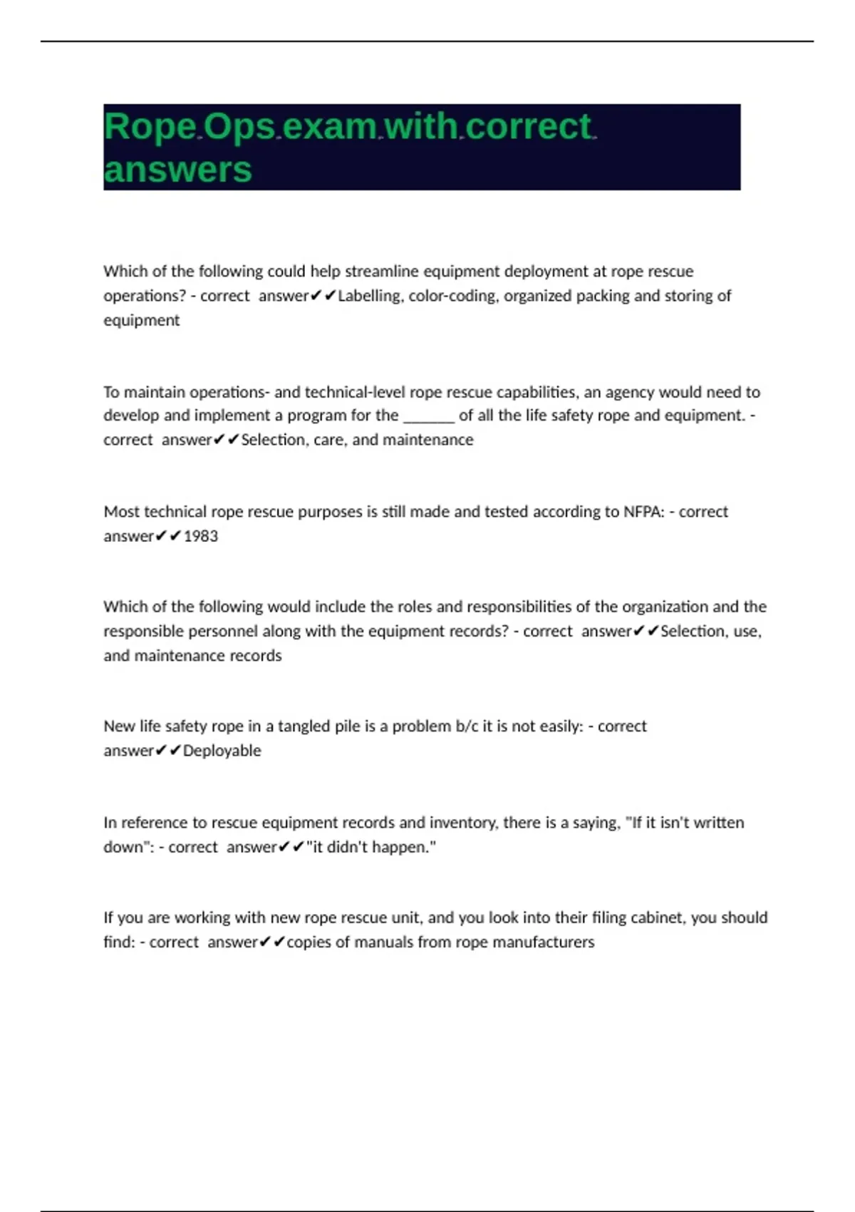 Rope Ops exam with correct |||\\\ |||\\\ |||\\\ |||\\\ |||\\\