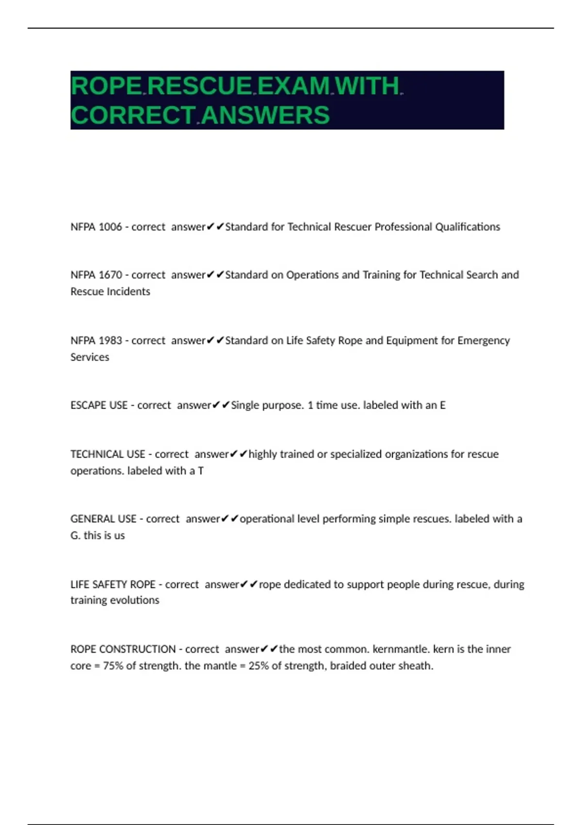 ROPE RESCUE EXAM WITH CORRECT ANSWERS