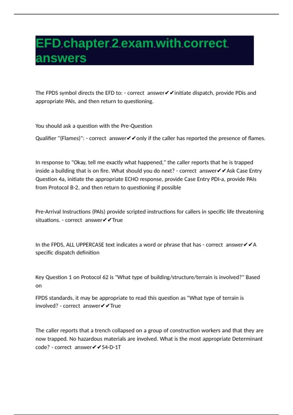 EFD chapter 2 exam with correct answers