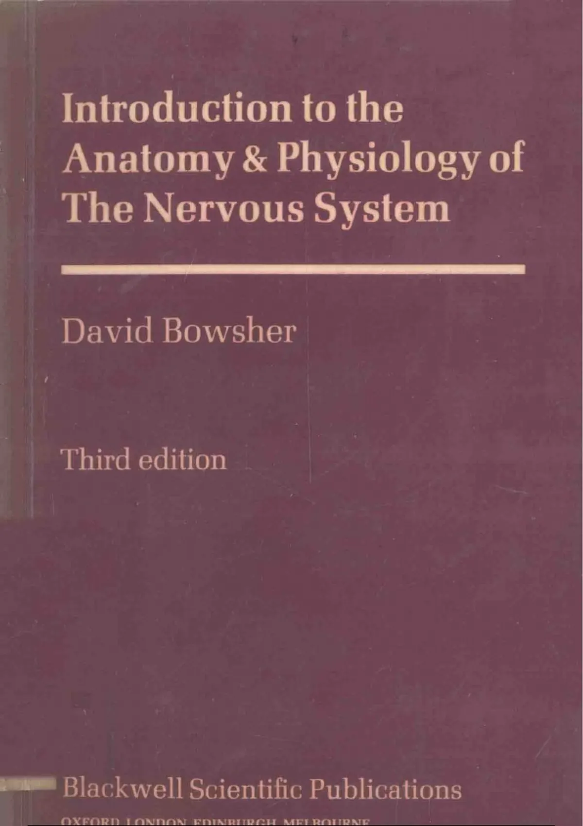 This document is a detailed study guide and review resource for Introduction to the Anatomy & Physiology of the Nervous System by David Bowsher. It covers all major topics relating to the structure and function of the nervous system, including neurological pathways, cell types, signaling, and system integration. Includes: Chapter-by-chapter summaries of anatomy and physiology Illustrations and diagrams of neurons, synapses, spinal cord, brain regions, etc. Key definitions, terminology, and physiological mechanisms Sample questions for self-assessment (multiple choice, short answer) Useful for courses in neuroscience, anatomy & physiology, neurobiology Ideal for students in biomedical sciences, nursing, pre-med, neuroscience, or anyone studying the nervous system in depth.