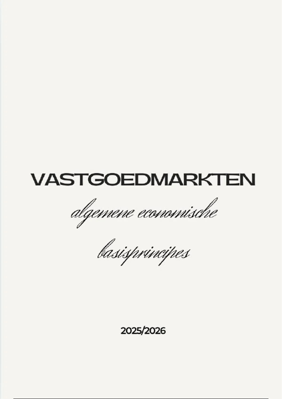 Dit is de samenvatting van het boek 'Algemene Economische Basisprincipes' inclusief alle begrippen (13 pagina's). Dit is volledig zelfstandig leesbaar en kan gebruikt worden voor het vak: Vastgoedmarkten!!