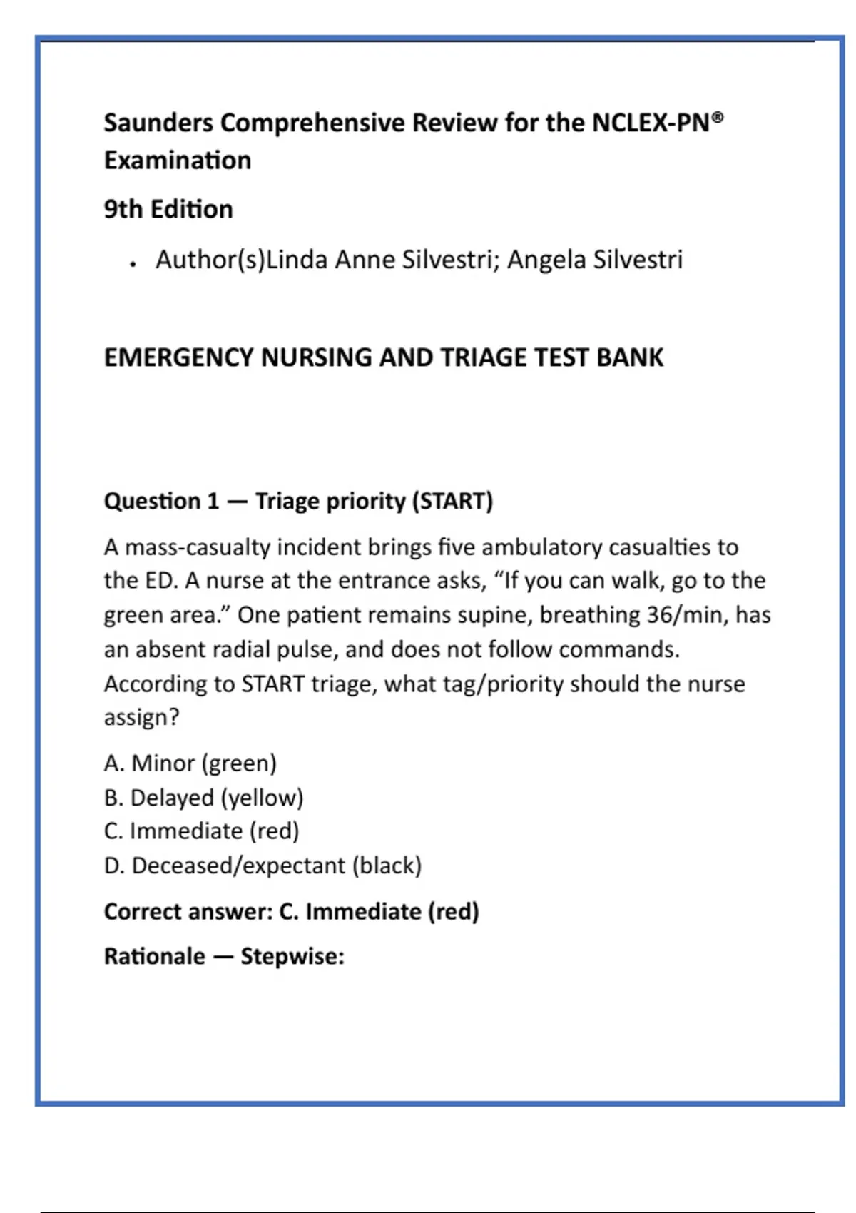EMERGENCY NURSING AND TRIAGE TEST BANK