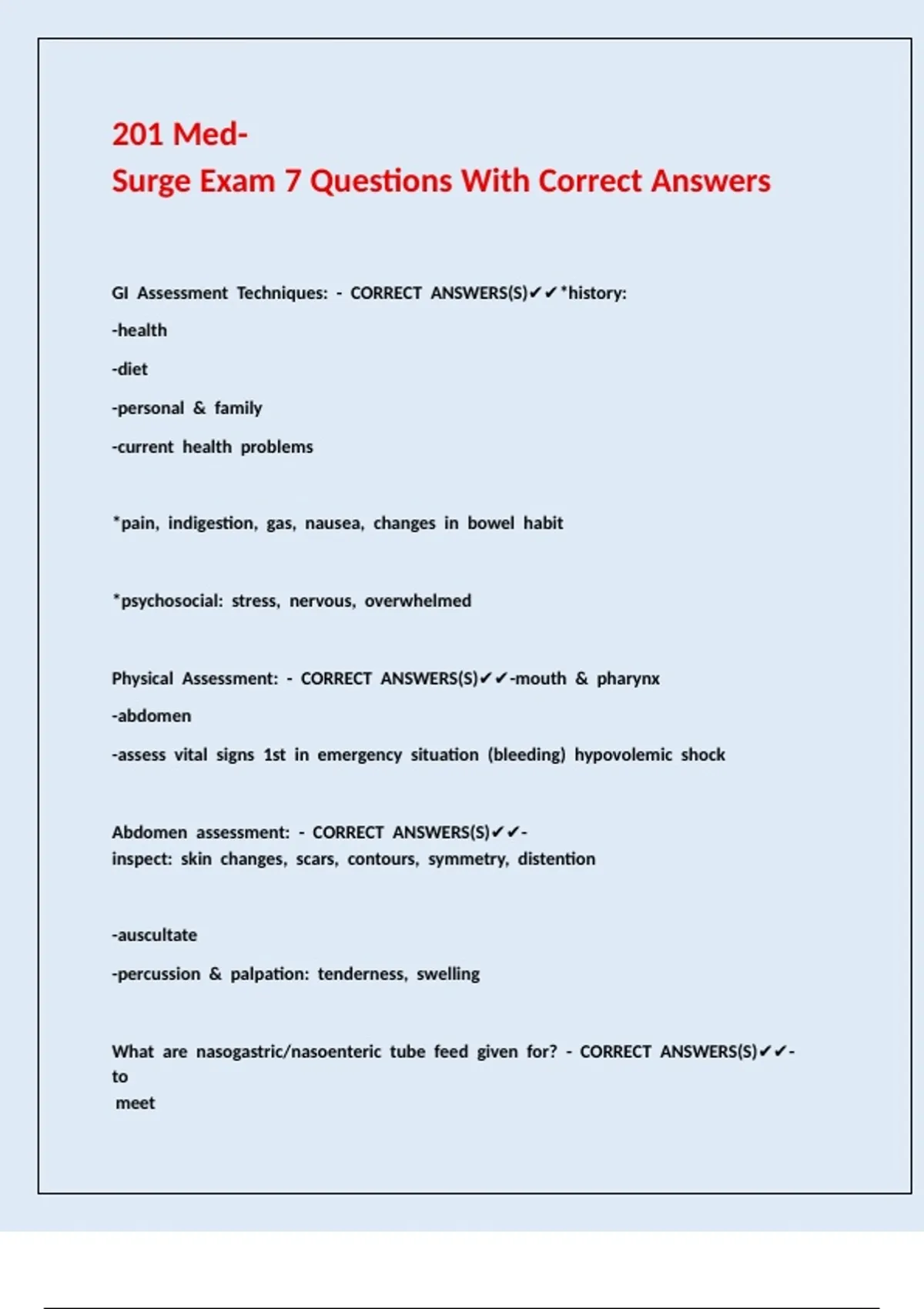 GI //Assessment //Techniques: //- //CORRECT //ANSWERS(S)✔✔*history: //