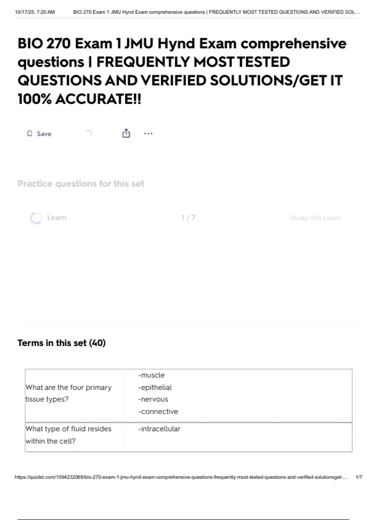 , 10/17/25, 7:20 AM BIO 270 Exam 1 JMU Hynd Exam comprehensive questions | FREQUENTLY MOST TESTED QUESTIONS AND VERIFIED SOL…