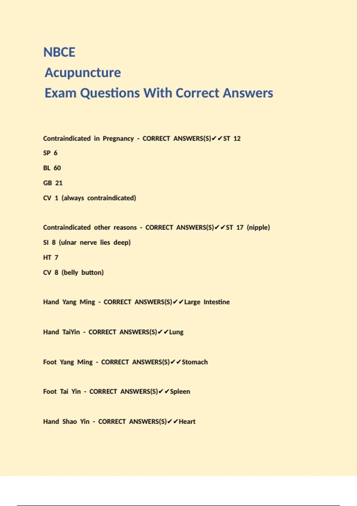 NBCE Acupuncture Exam Questions With Correct Answers
