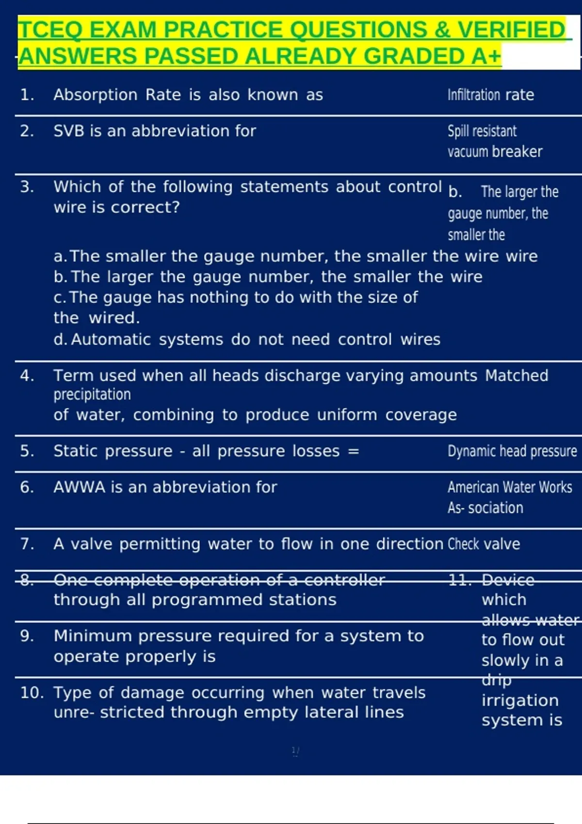 ,TCEQ EXAM PRACTICE QUESTIONS & VERIFIED