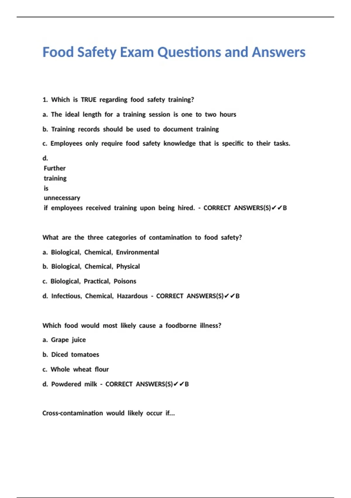 d. //Chemical //Contamination //- //CORRECT //ANSWERS(S)✔✔D