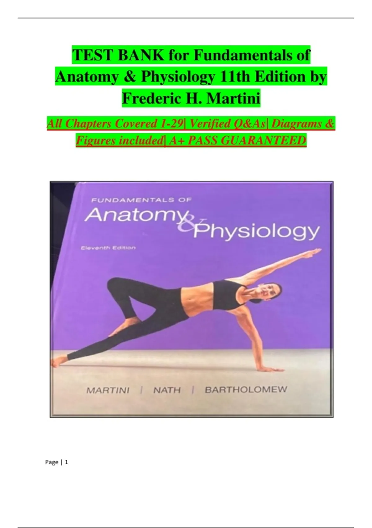Test Bank Fundamentals of Anatomy & Physiology, 11th Edition by Frederic H Martini All Chapters 1-29 - Download as a PDF