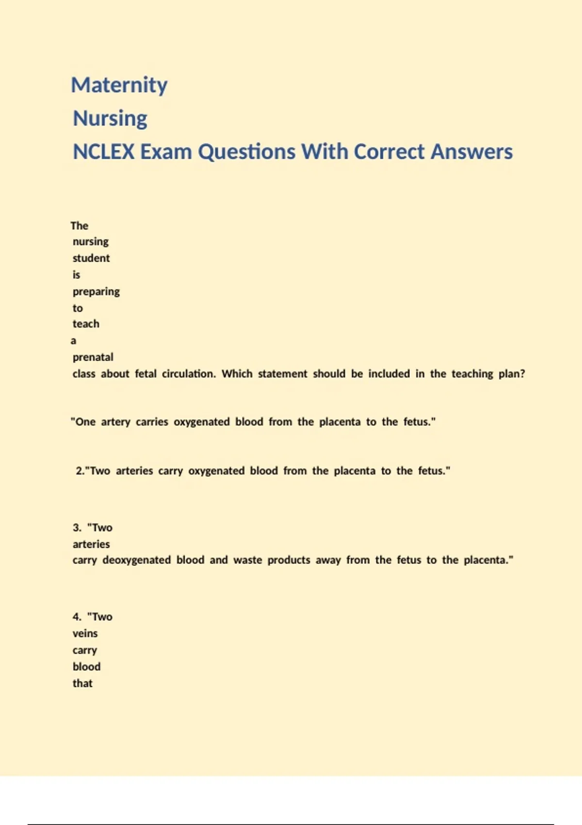 // 2."Two //arteries //carry //oxygenated //blood //from //the //placenta //to //the //fetus."