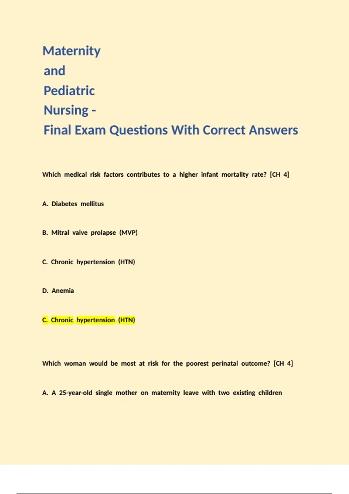 Maternity and Pediatric Nursing - Final Exam Questions With Correct Answers