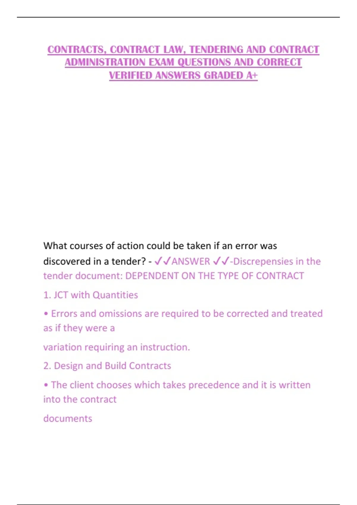 discovered in a tender? - ✔✔ANSWER ✔✔-Discrepensies in the