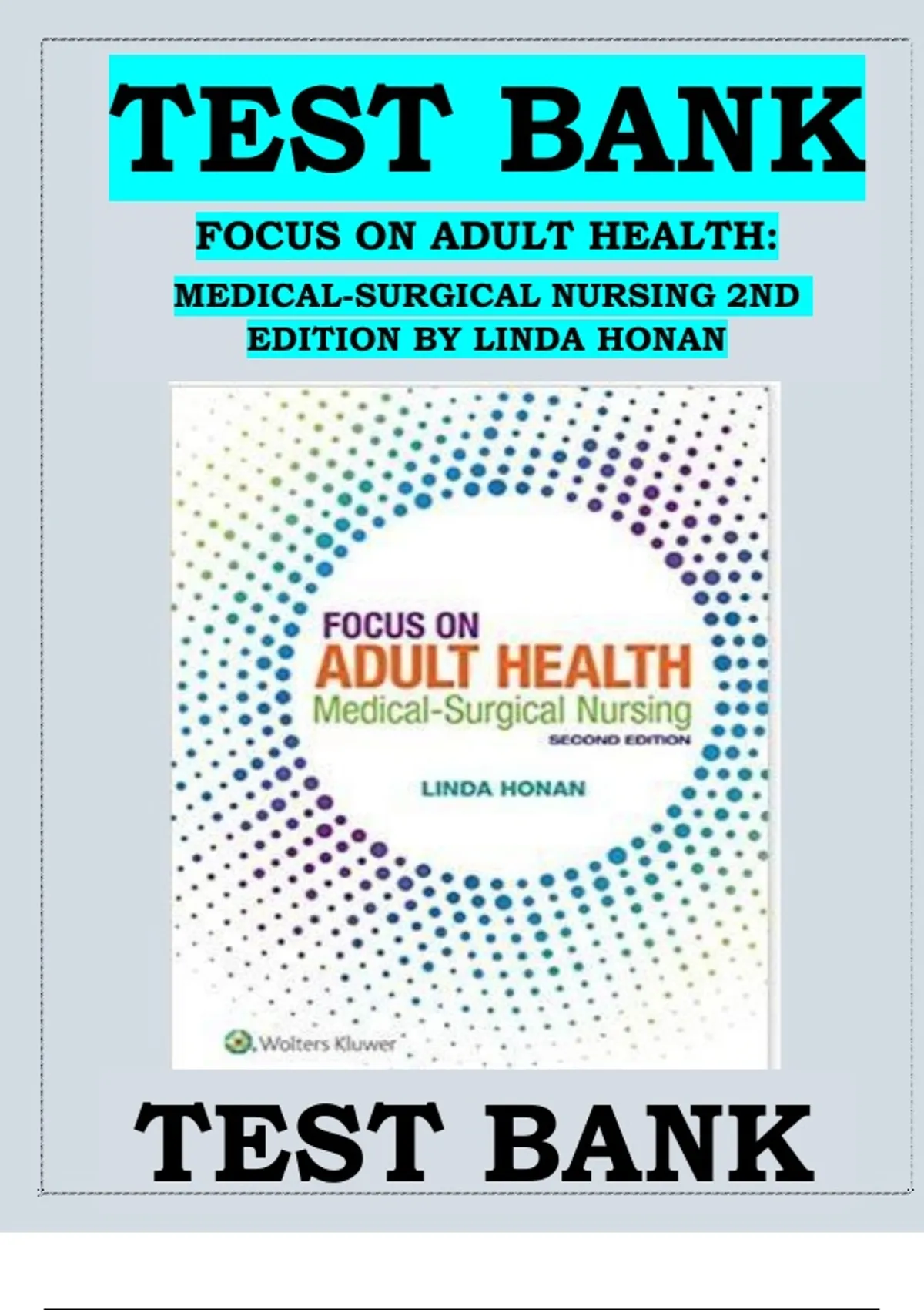 Build your expertise in adult nursing care with the Test Bank for Focus on Adult Health: Medical-Surgical Nursing, 2nd Edition by Linda Honan. This comprehensive 2025/2026 test bank provides accurate, instructor-approved questions, answers, and rationales covering pathophysiology, patient assessment, pharmacologic interventions, and management of acute and chronic conditions. Perfect for nursing students, instructors, and NCLEX preparation, this resource aligns with the Honan 2nd Edition textbook to help you develop strong clinical judgment and critical thinking skills in medical-surgical practice. A reliable companion for excelling in adult health, clinical nursing, and med-surg exam preparation.