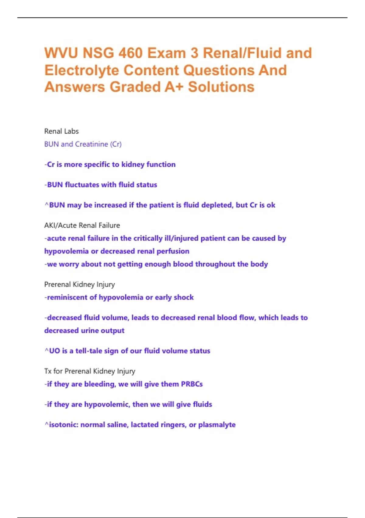 Tx for Prerenal Kidney Injury