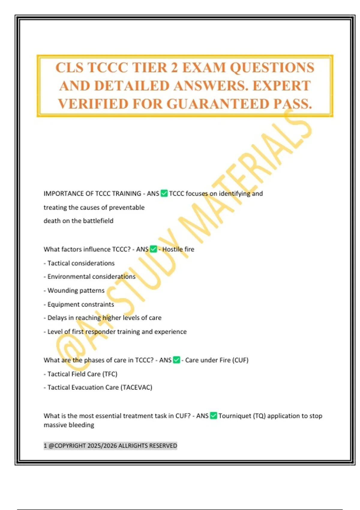 CLS TCCC TIER 2 EXAM QUESTIONS