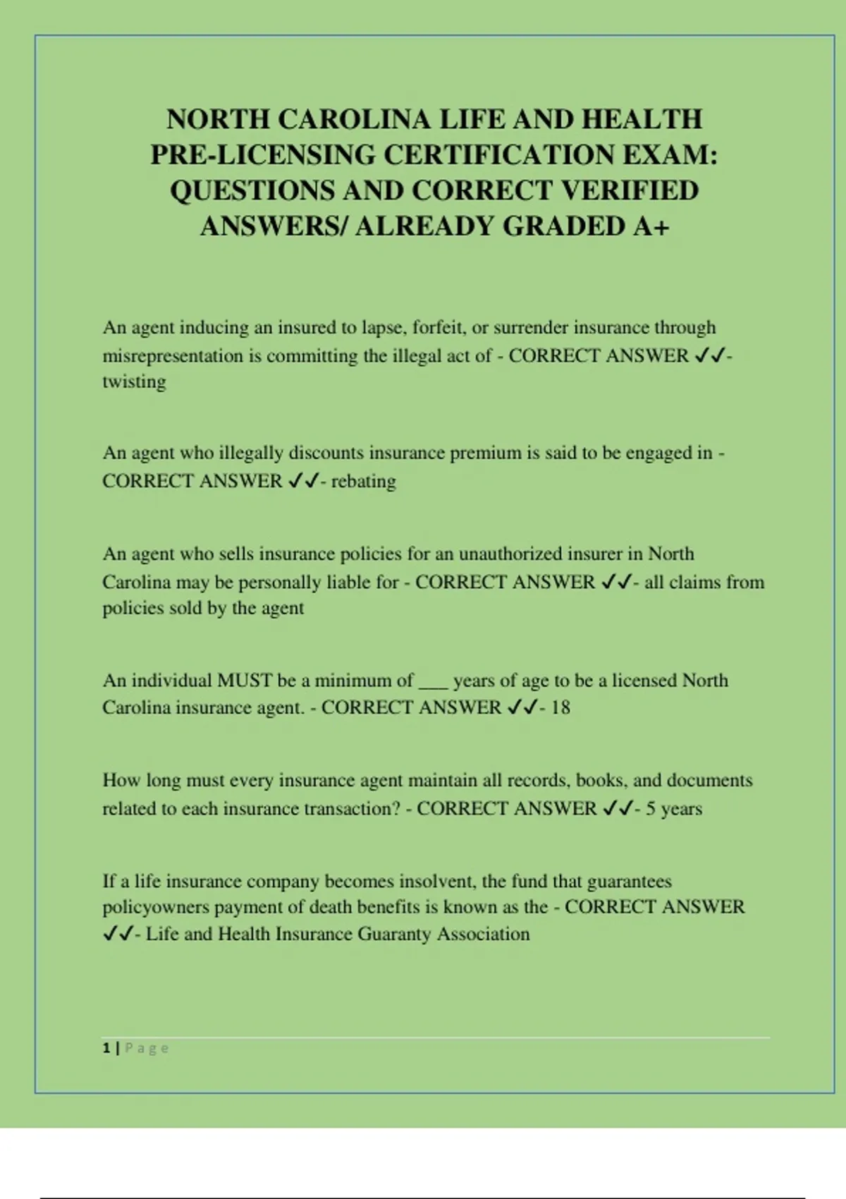 Carolina accident and health insurance agent? - CORRECT ANSWER ✔✔-