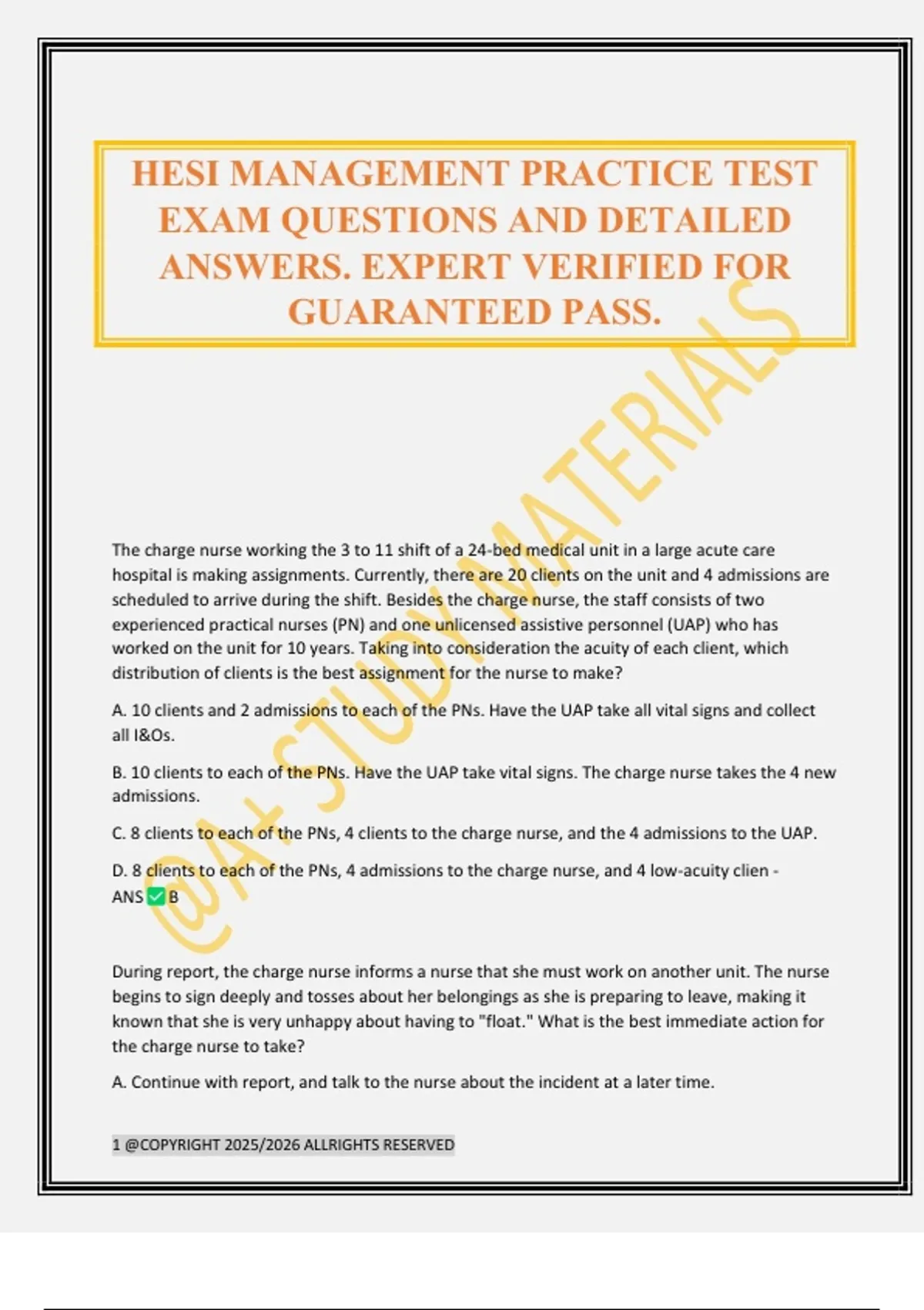 HESI MANAGEMENT PRACTICE TEST EXAM QUESTIONS AND DETAILED ANSWERS. EXPERT VERIFIED FOR GUARANTEED PASS.