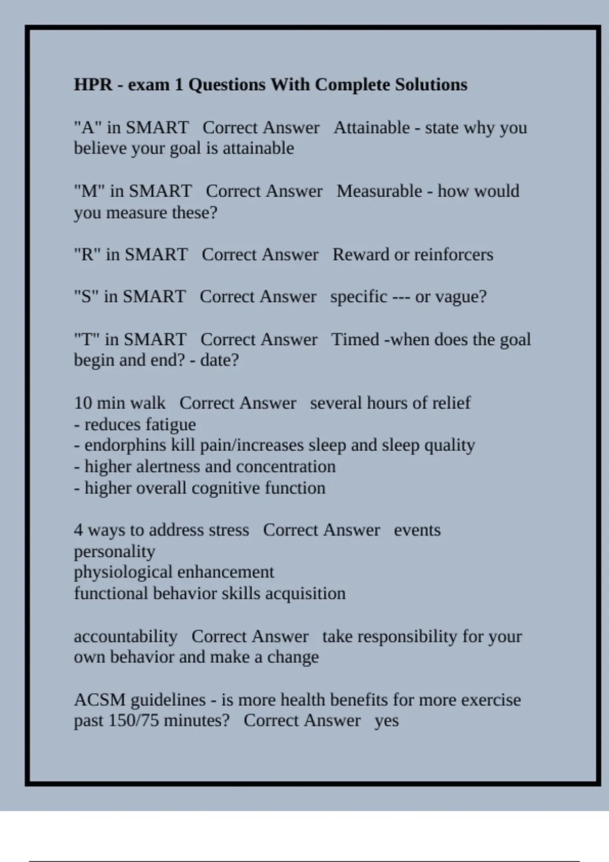 "A" in SMART Correct Answer Attainable - state why you