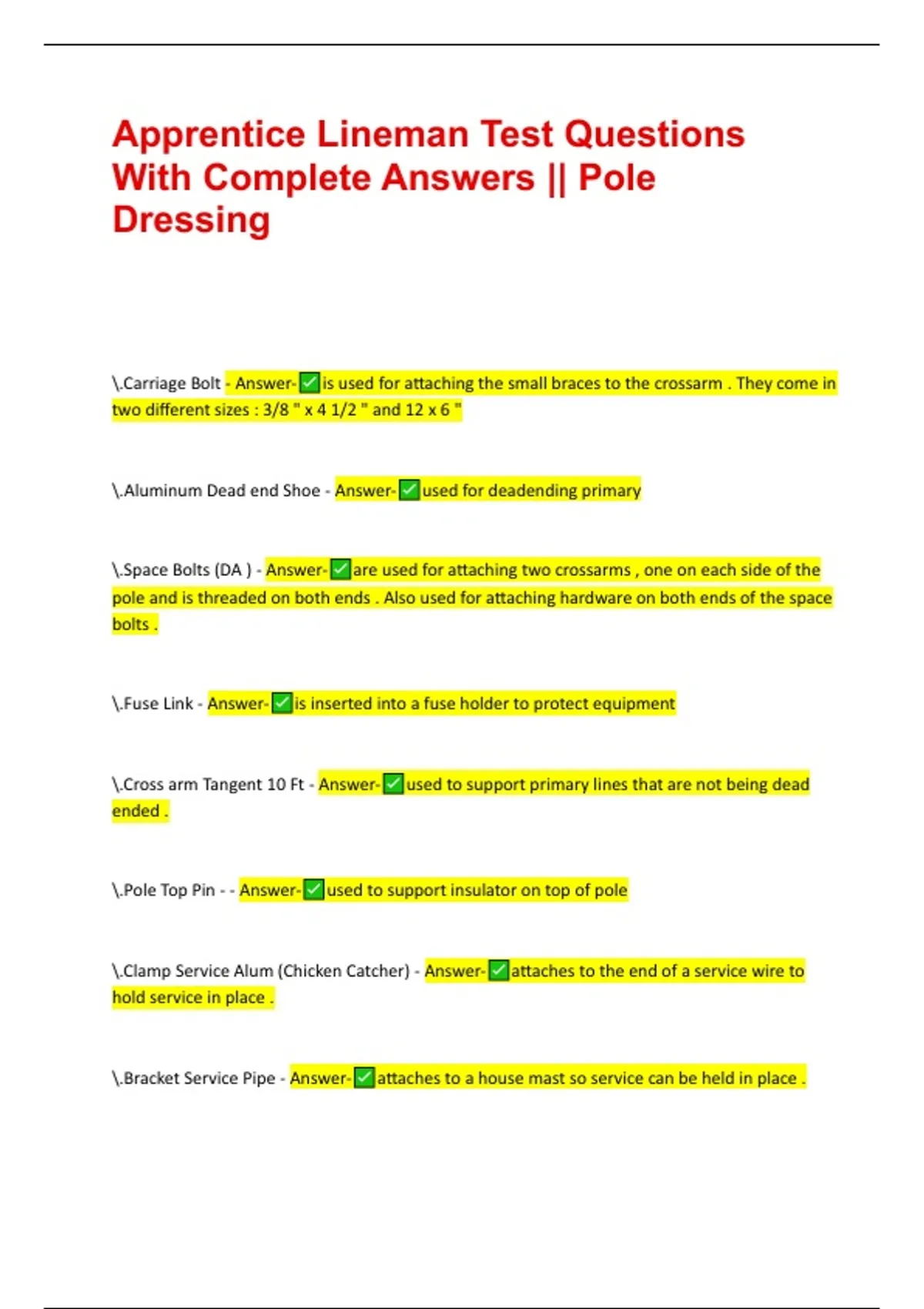 \.Space Bolts (DA ) - Answer- are used for attaching two crossarms , one on each side of the