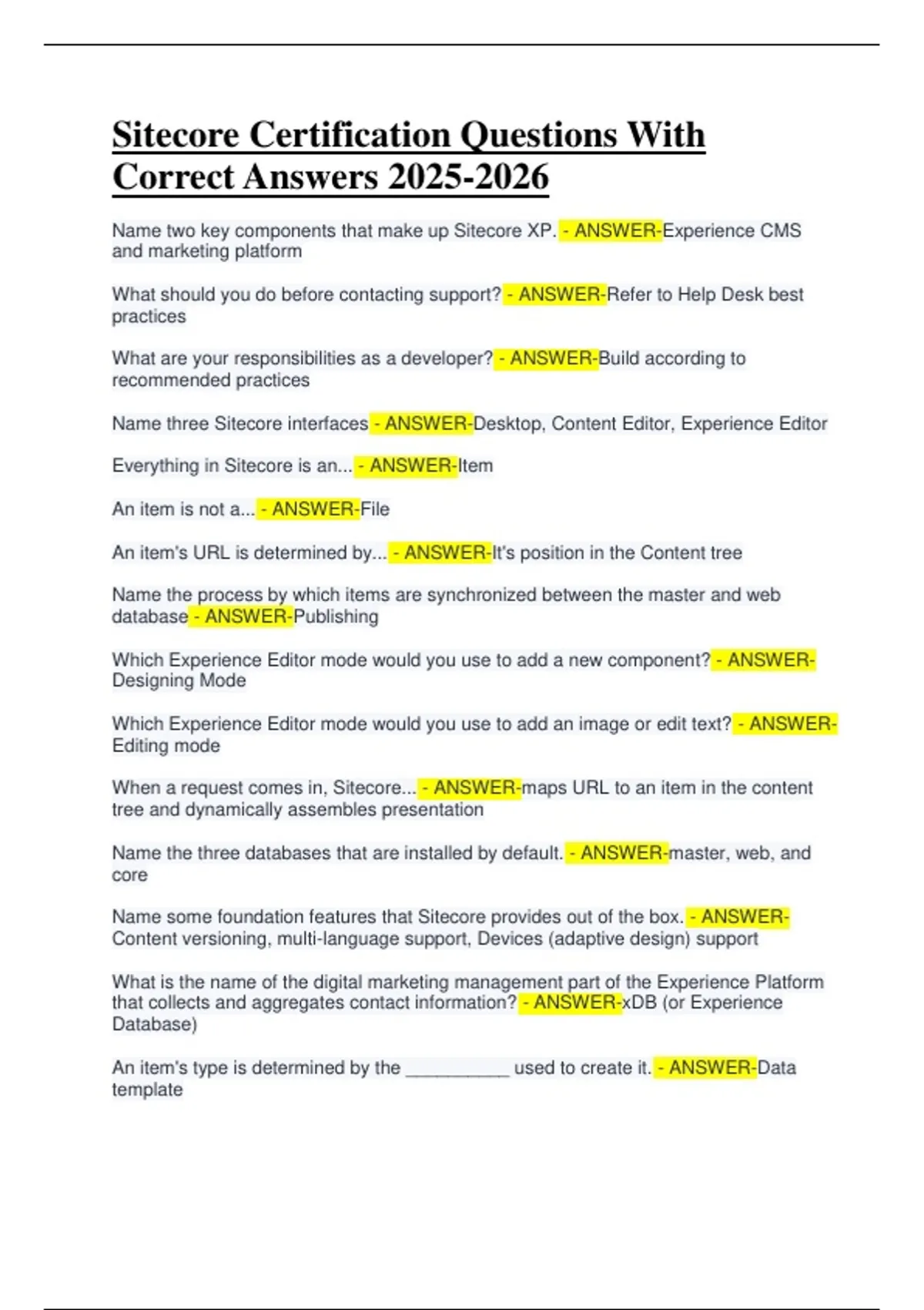 Sitecore Certification Questions With Correct Answers