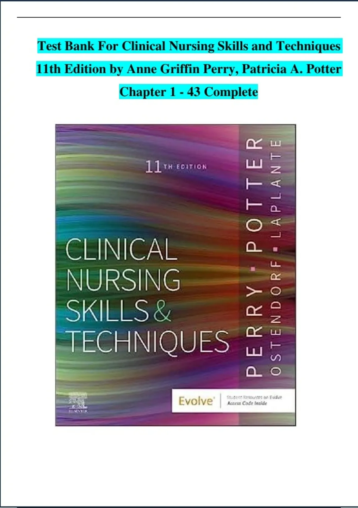 linical Nursing Skills and Techniques, 11th Edition – Anne Griffin Perry, Patricia A. Potter & Wendy R. Ostendorf | Complete Test Bank (Chapters 1–43)