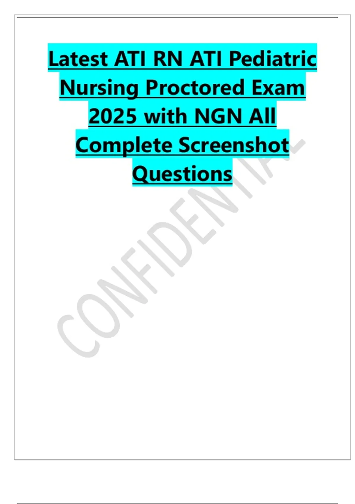 Latest ATI RN ATI Pediatric Nursing Proctored Exam 2025 with NGN All Complete Screenshot Questions