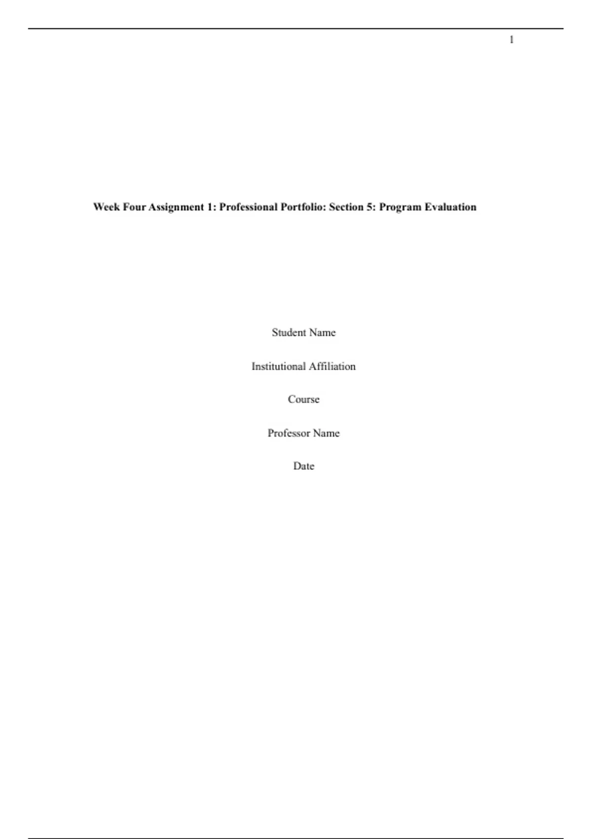 Week Four Assignment 1: Professional Portfolio: Section 5: Program Evaluation