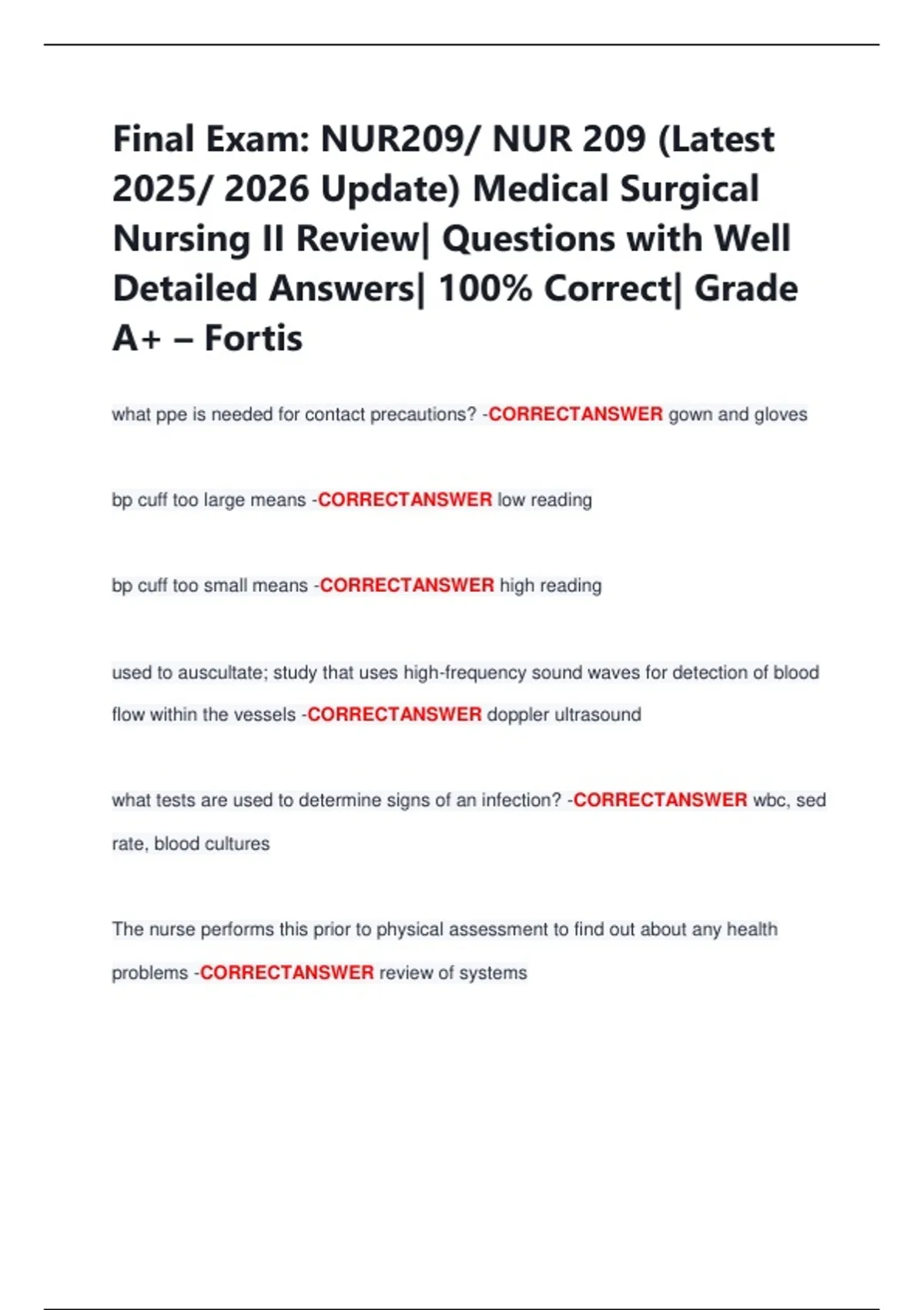 Final Exam: NUR209/ NUR 209 (Latest