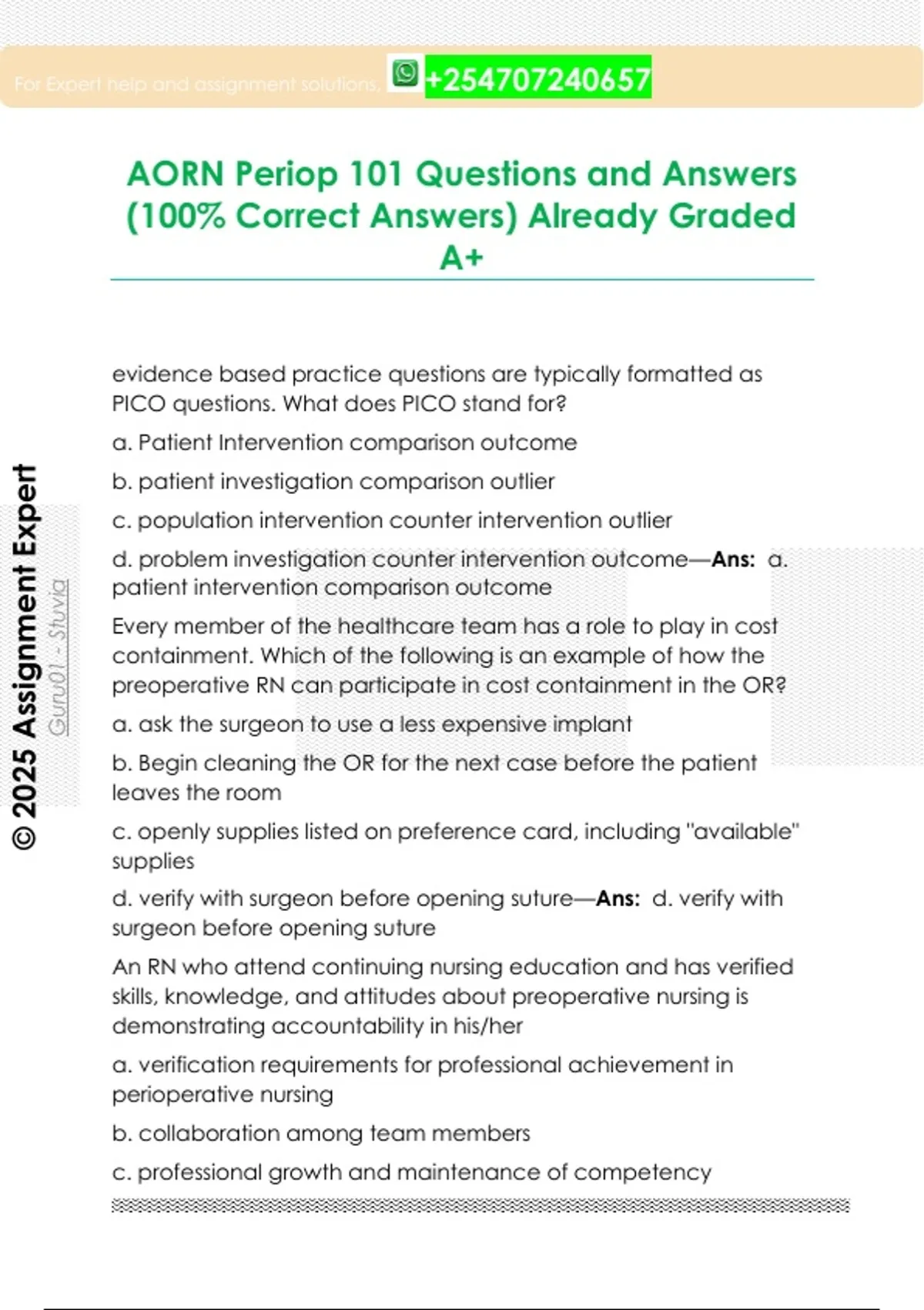 AORN Periop 101 Questions and Answers