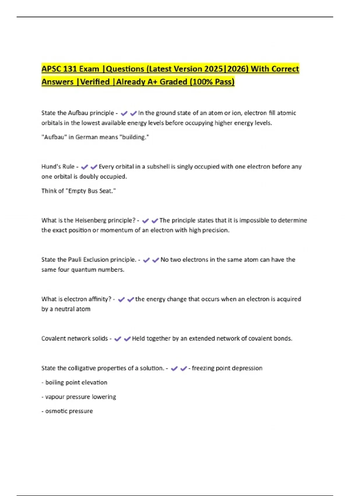 APSC 131 Exam |Questions (Latest Version 2025|2026) With Correct Answers |Verified |Already A+ Graded (100% Pass)