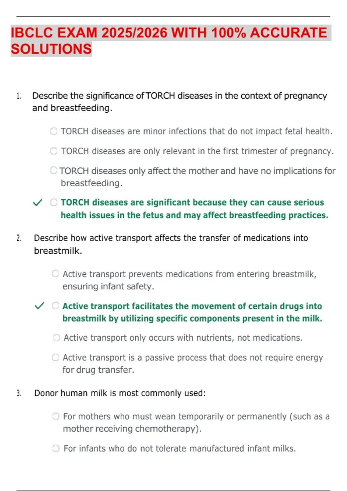 IBCLC EXAM 2025/2026 WITH 100% ACCURATE SOLUTIONS