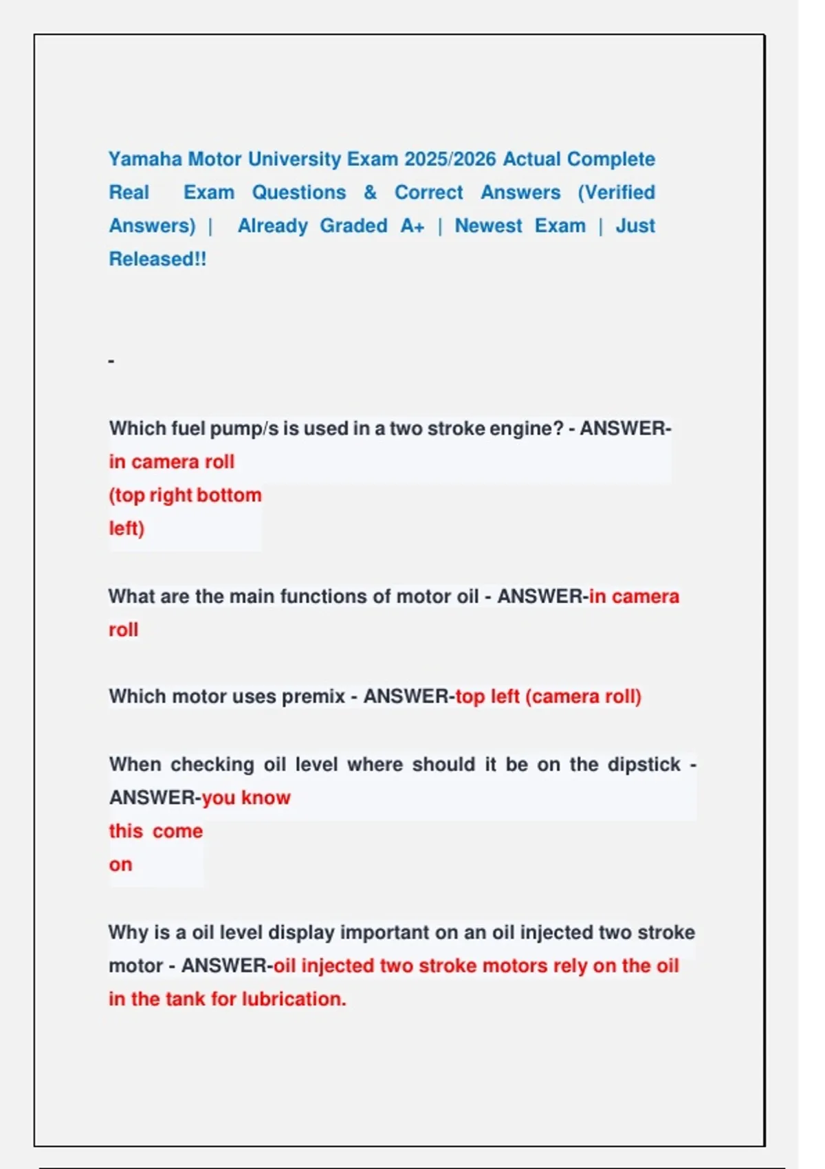 Real Exam Questions & Correct Answers (Verified