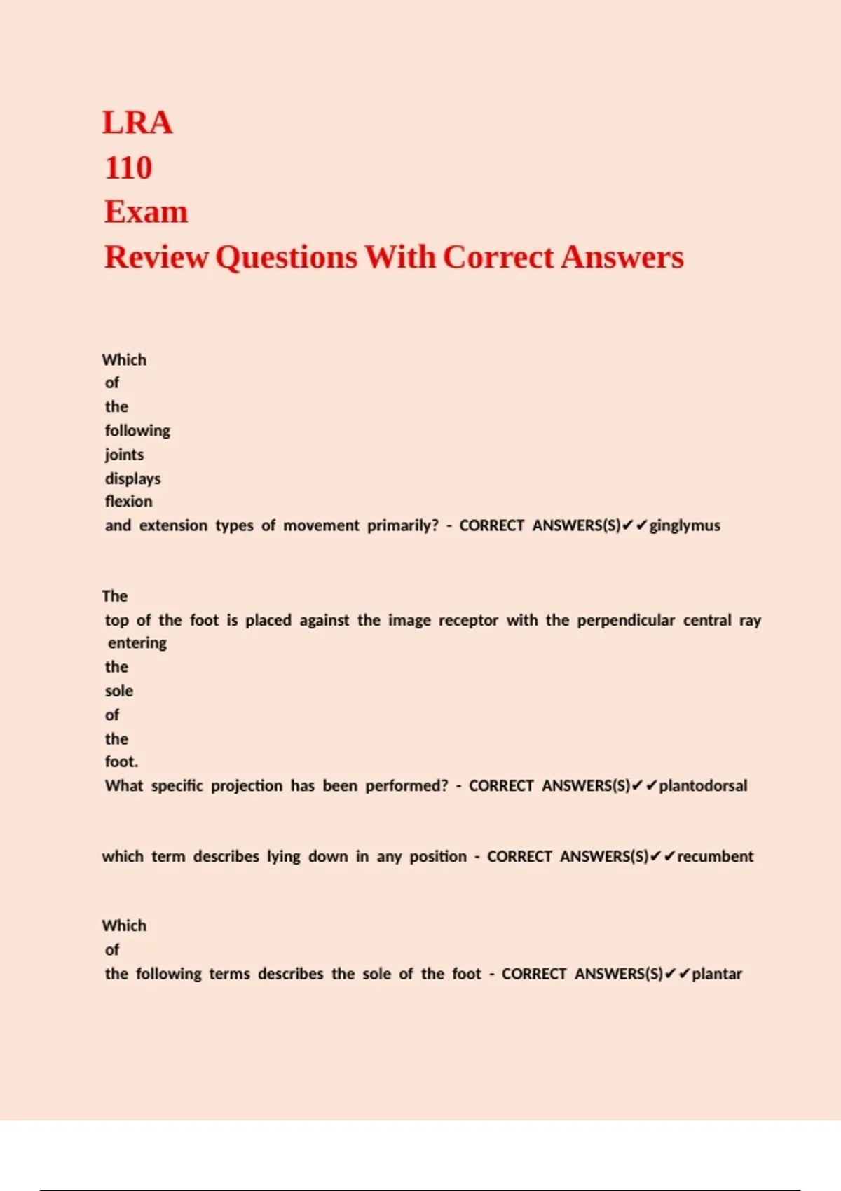 LRA 110 Exam Review Questions With Correct Answers