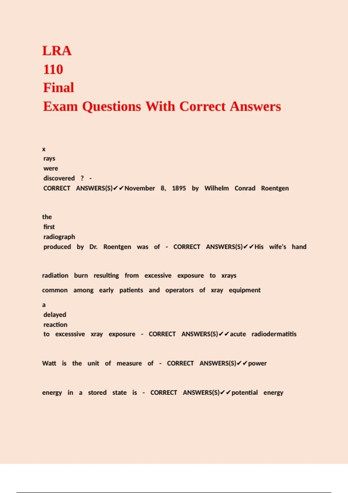 LRA 110 Final Exam Questions With Correct Answers