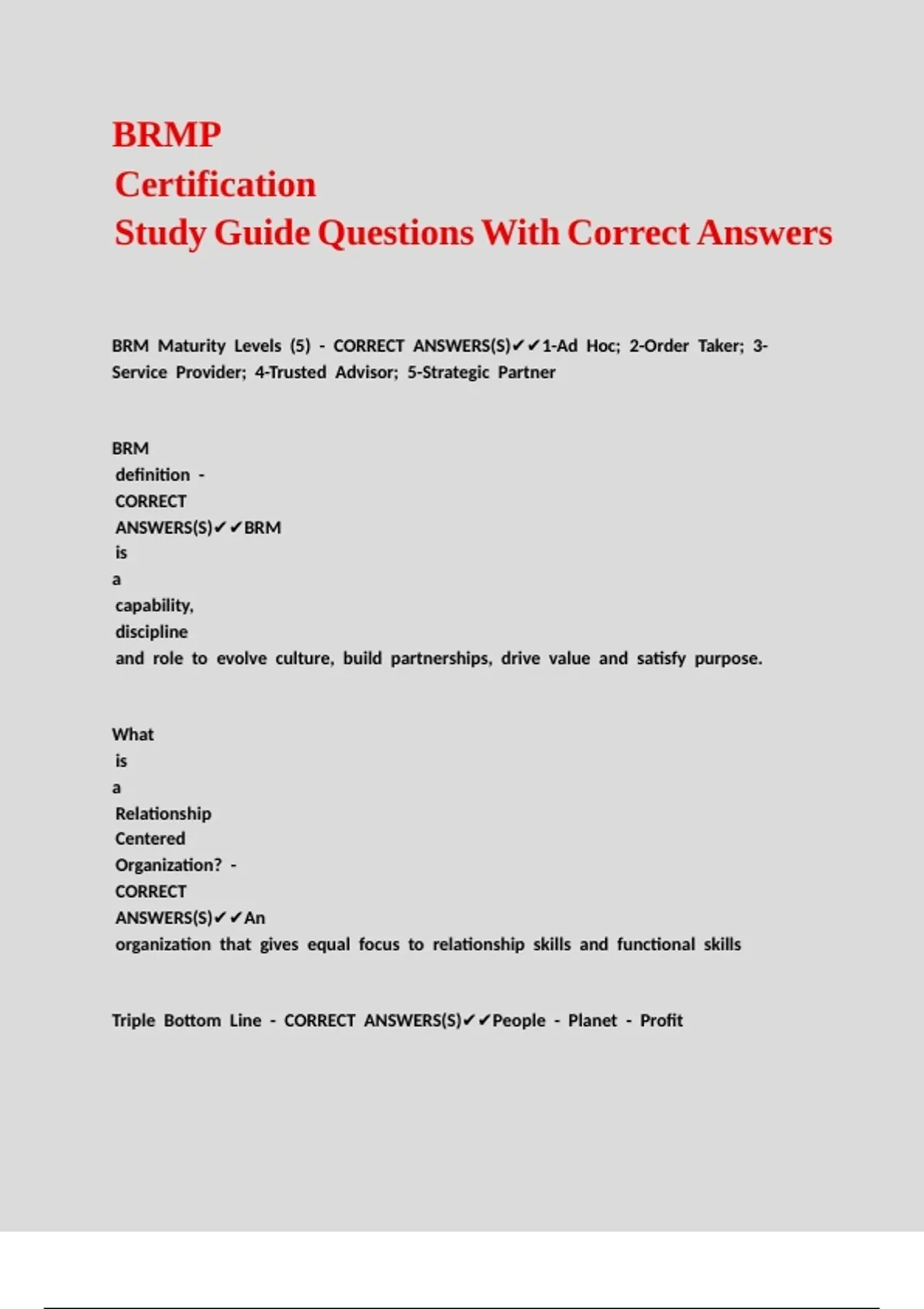 BRM //Maturity //Levels //(5) //- //CORRECT //ANSWERS(S)✔✔1-Ad //Hoc; //2-Order //Taker; //3-