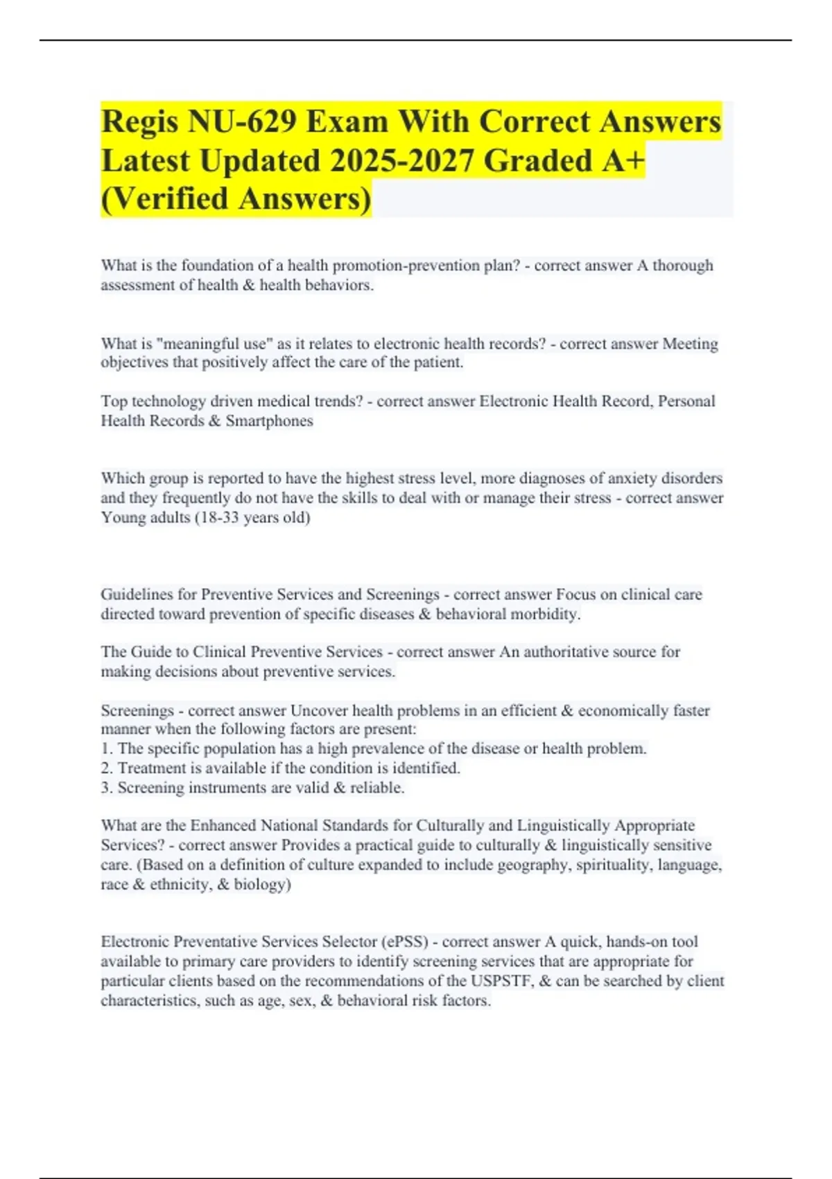 The Guide to Clinical Preventive Services - correct answer An authoritative source for