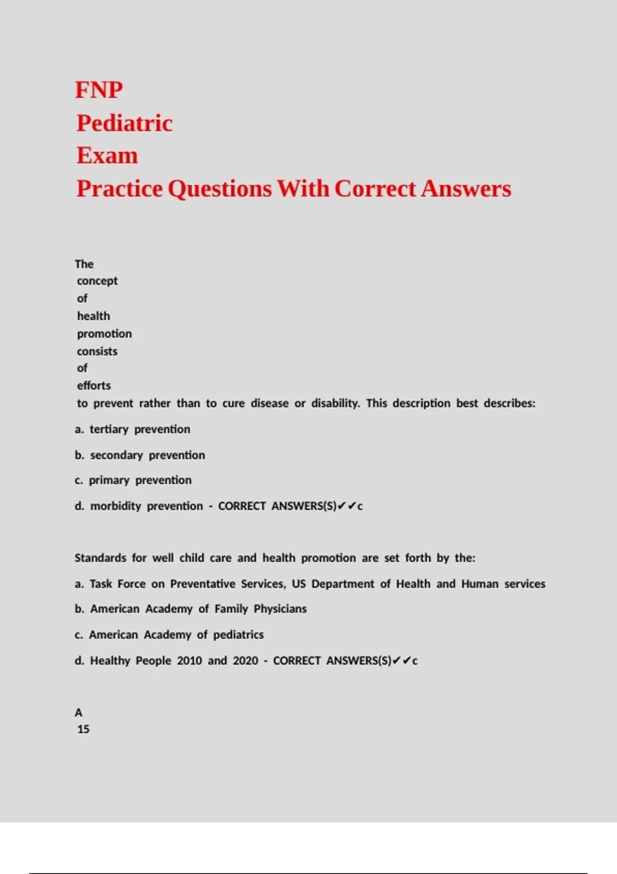 FNP Pediatric Exam Practice Questions With Correct Answers