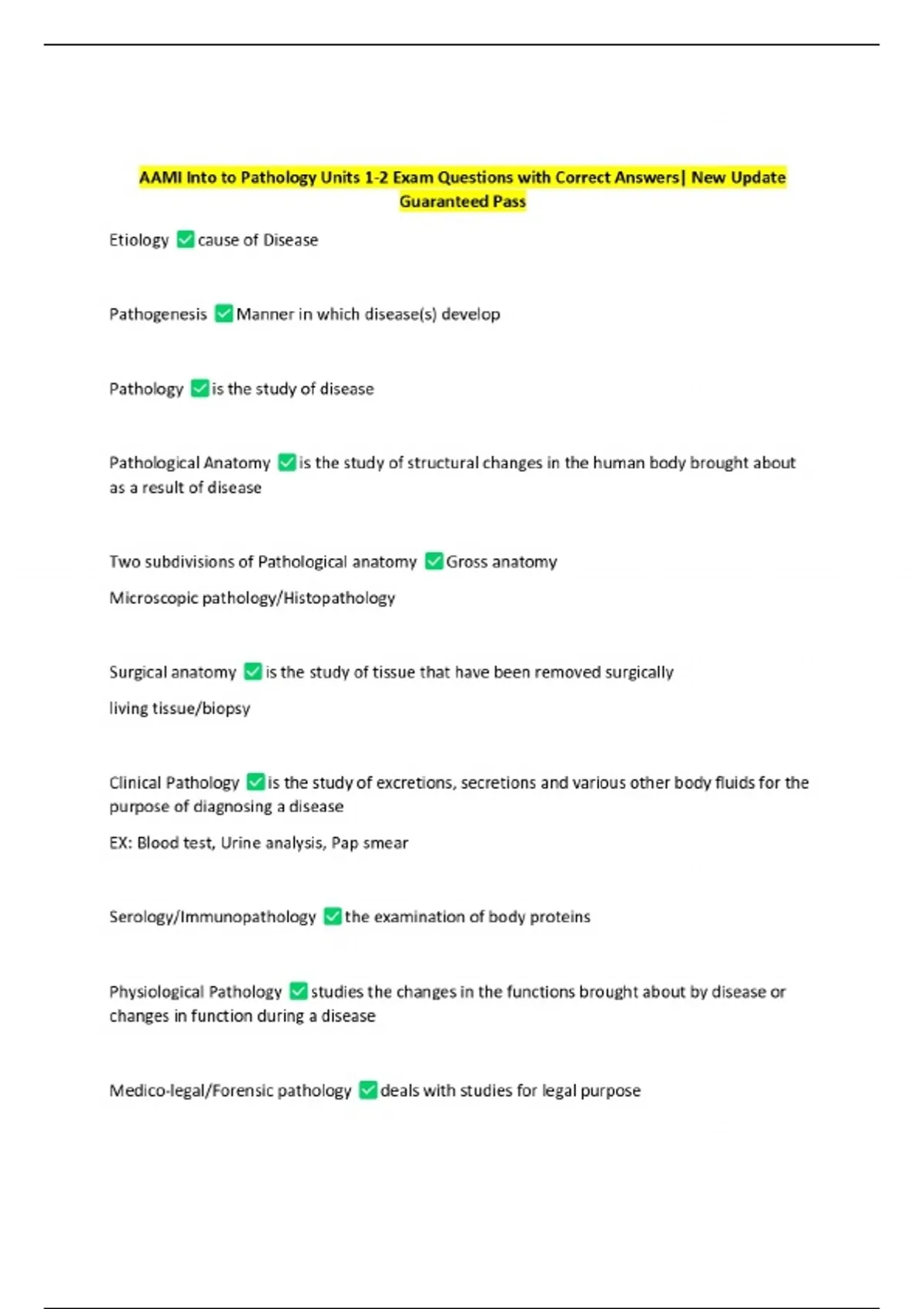 AAMI Into to Pathology Units 1-2 Exam Questions with Correct Answers| New Update Guaranteed Pass