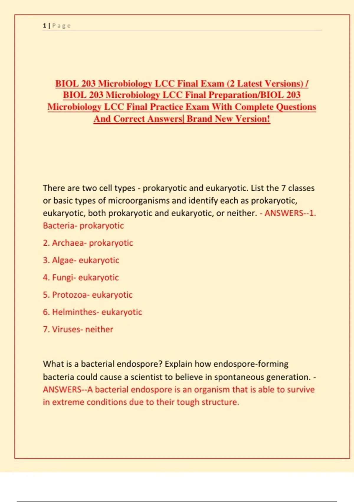 BIOL 203 Microbiology LCC Final Exam (2 Latest Versions) /