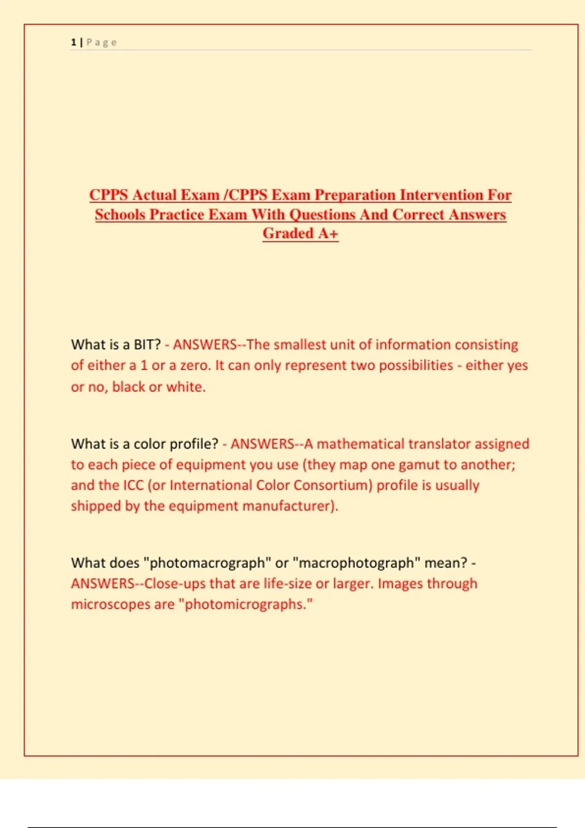 CPPS Actual Exam /CPPS Exam Preparation Intervention For Schools Practice Exam With Questions And Correct Answers Graded A+