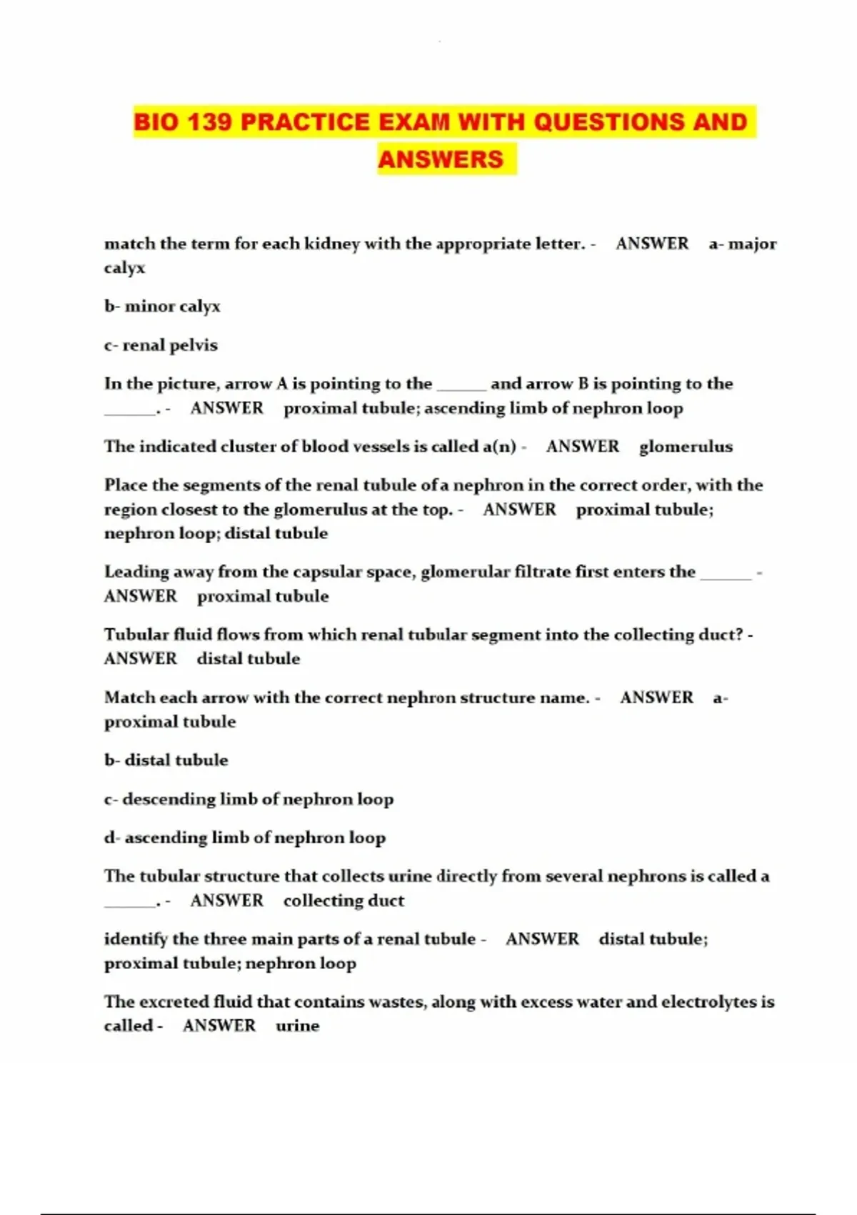 Bio 139 practice exam with questions and answers.Bio 139 practice exam with questions and answers.