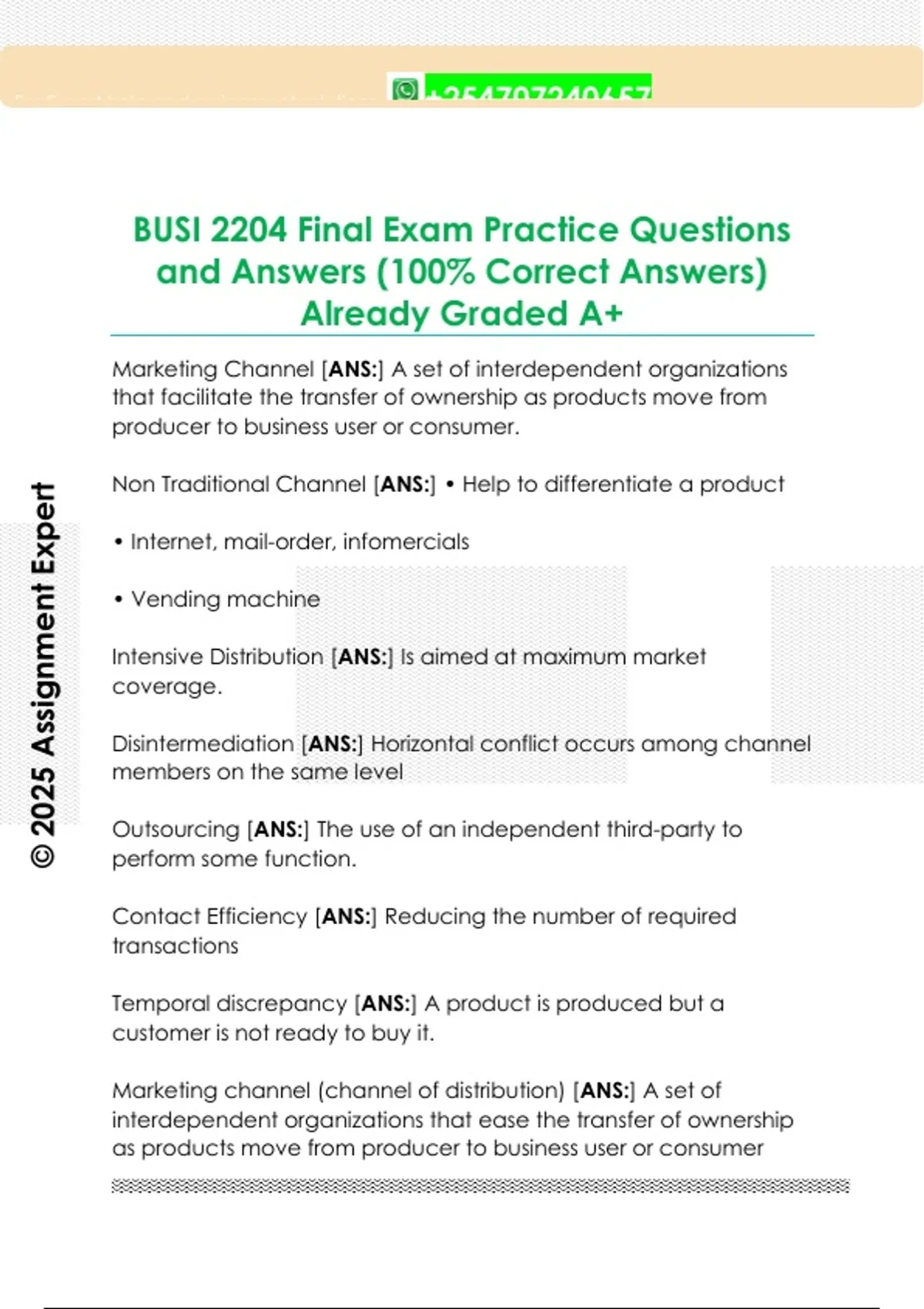 BUSI 2204 Final Exam Practice Questions and Answers (100% Correct Answers) Already Graded A+