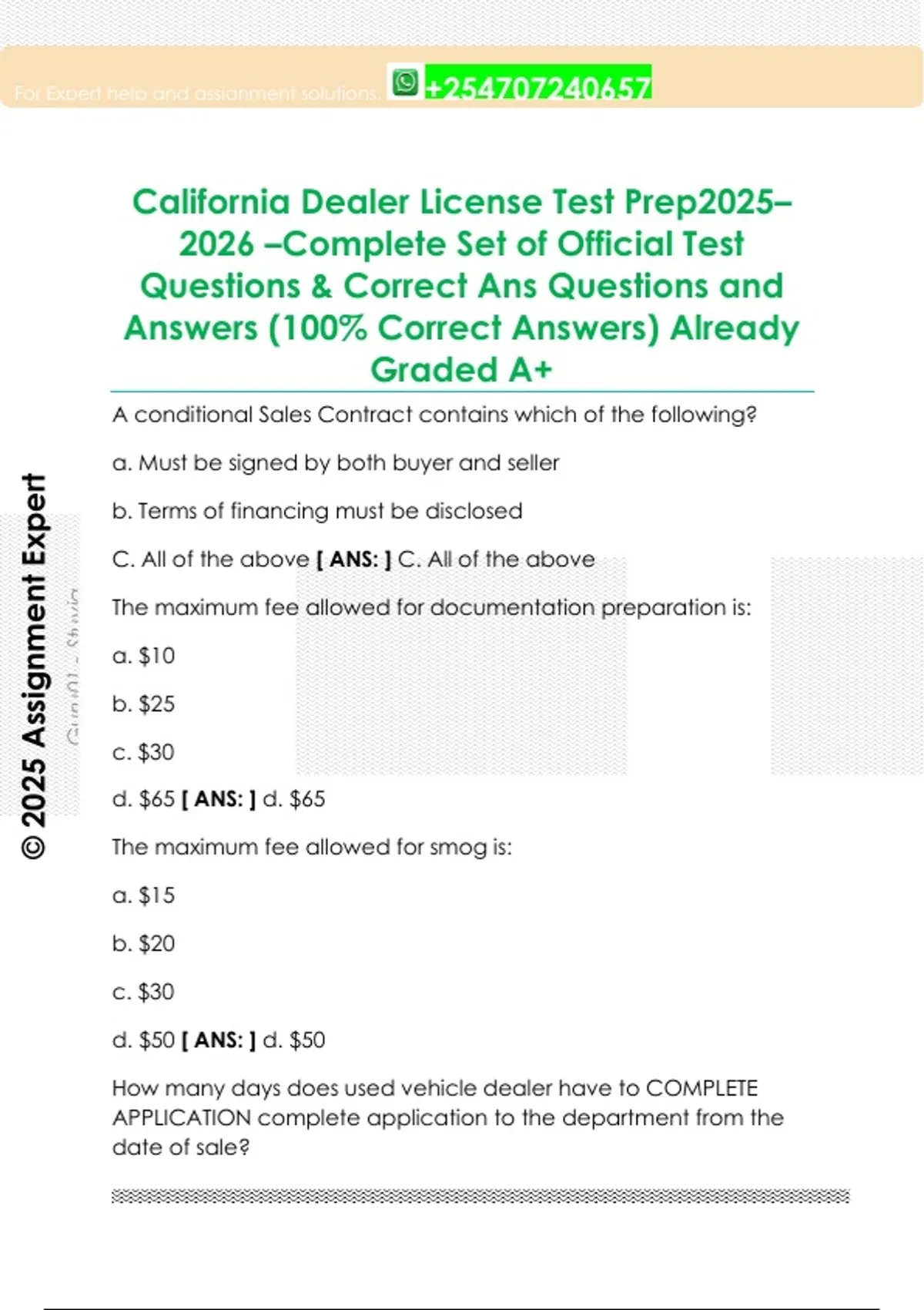 California Dealer License Test Prep2025–