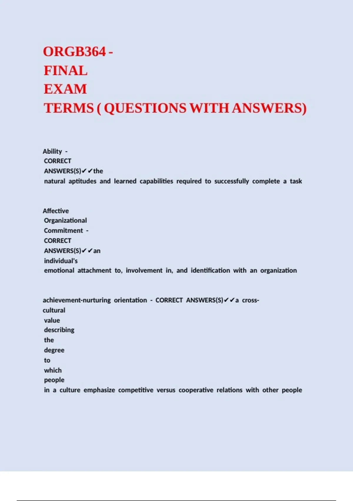 ORGB364 - FINAL EXAM TERMS ( QUESTIONS WITH ANSWERS)