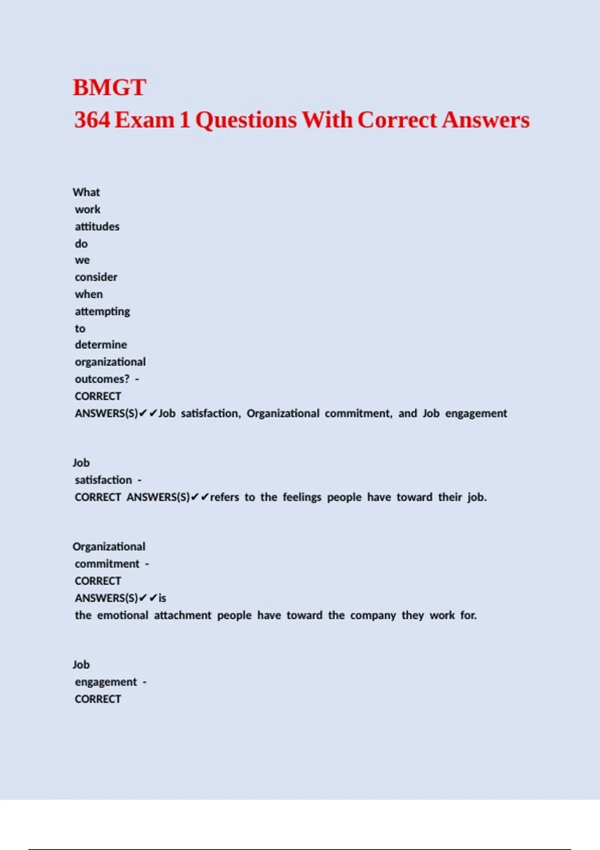 /ANSWERS(S)✔✔Job //satisfaction, //Organizational //commitment, //and //Job //engagement