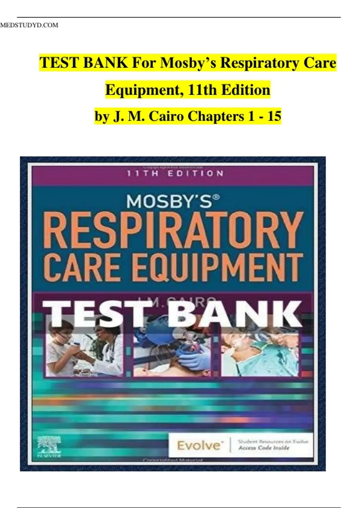 Test Bank for Mosby's Respiratory Care Equipment 11th Edition by J. M. Cairo ||ISBN:9780323712217