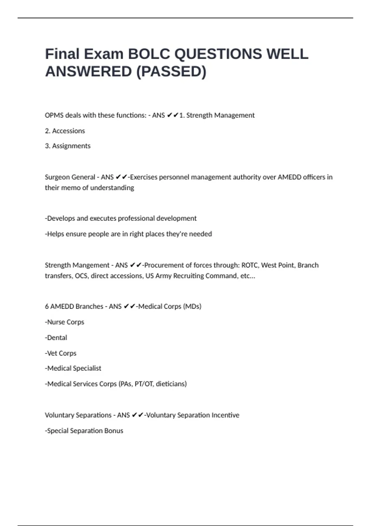 Strength Mangement - ANS ✔✔-Procurement of forces through: ROTC, West Point, Branch