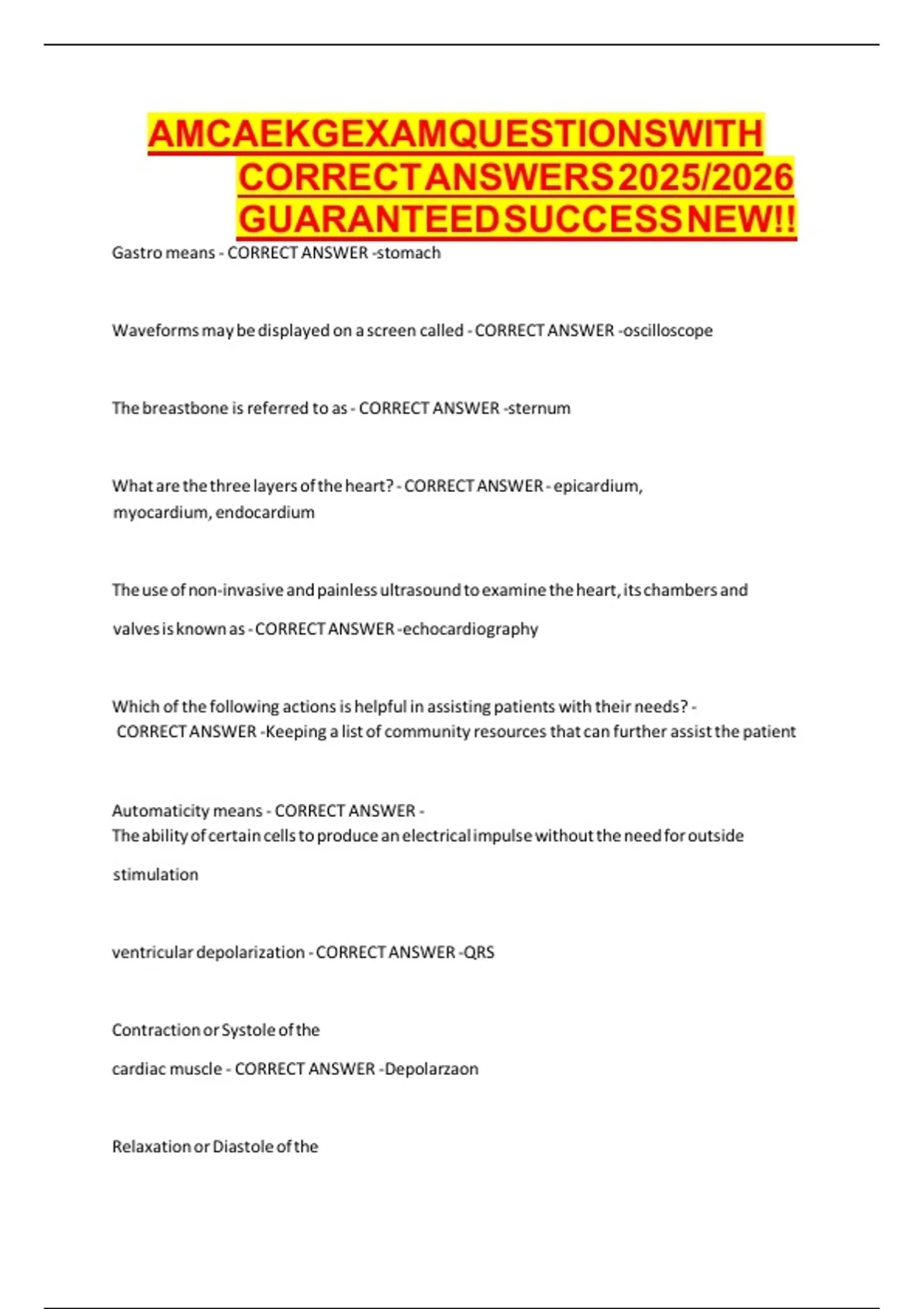 AMCA EKG EXAM QUESTIONS WITH CORRECT ANSWERS 2025/2026 GUARANTEED SUCCESS NEW!!