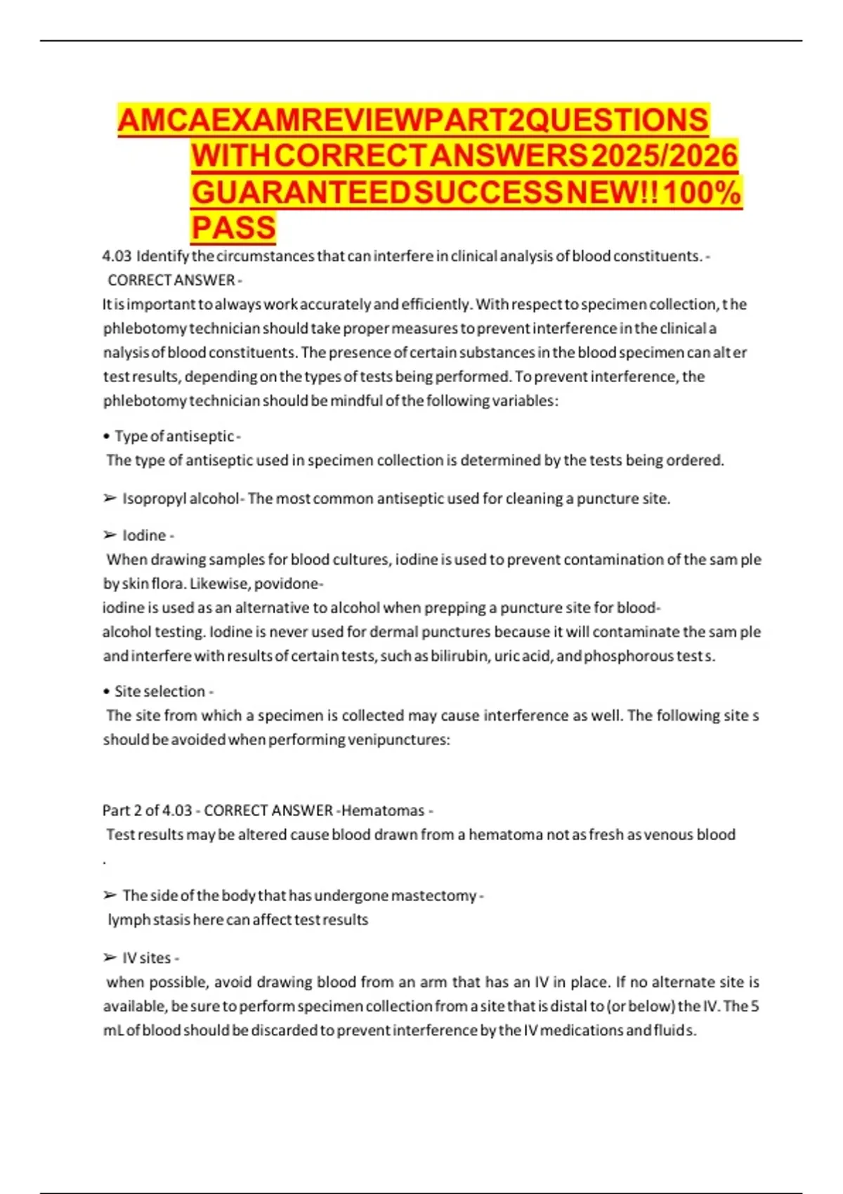AMCA EXAM REVIEW PART 2 QUESTIONS WITH CORRECT ANSWERS 2025/2026 GUARANTEED SUCCESS NEW!! 100% PASSAMCA EXAM REVIEW PART 2 QUESTIONS WITH CORRECT ANSWERS 2025/2026 GUARANTEED SUCCESS NEW!! 100% PASSAMCA EXAM REVIEW PART 2 QUESTIONS WITH CORRECT ANSWERS 2025/2026 GUARANTEED SUCCESS NEW!! 100% PASSAMCA EXAM REVIEW PART 2 QUESTIONS WITH CORRECT ANSWERS 2025/2026 GUARANTEED SUCCESS NEW!! 100% PASSAMCA EXAM REVIEW PART 2 QUESTIONS WITH CORRECT ANSWERS 2025/2026 GUARANTEED SUCCESS NEW!! 100% PASS