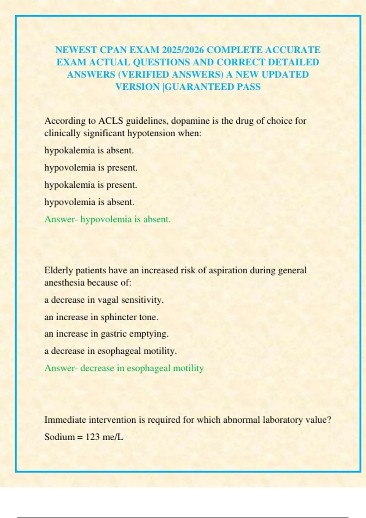 EXAM ACTUAL QUESTIONS AND CORRECT DETAILED