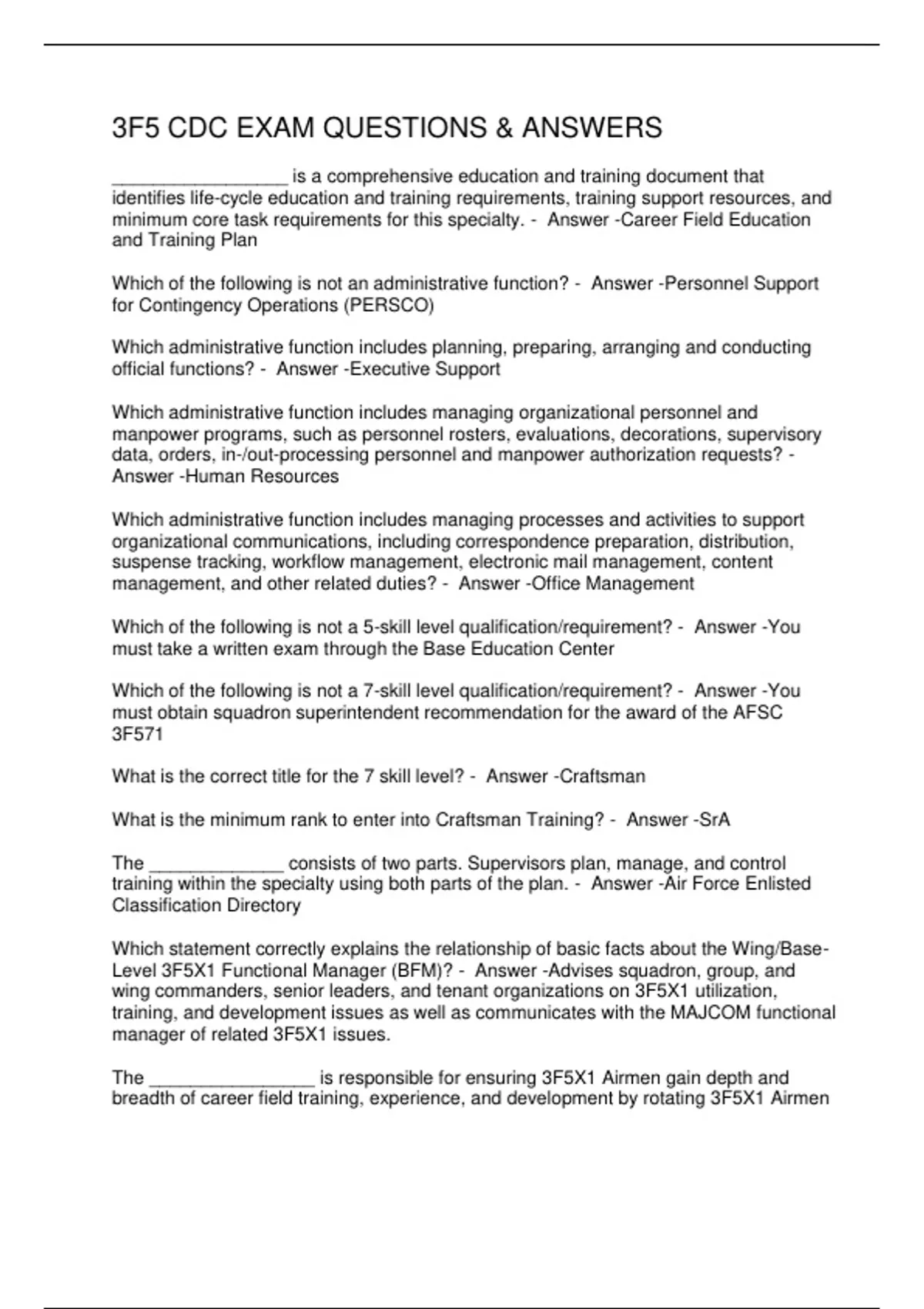 3F5 CDC EXAM QUESTIONS & ANSWERS
